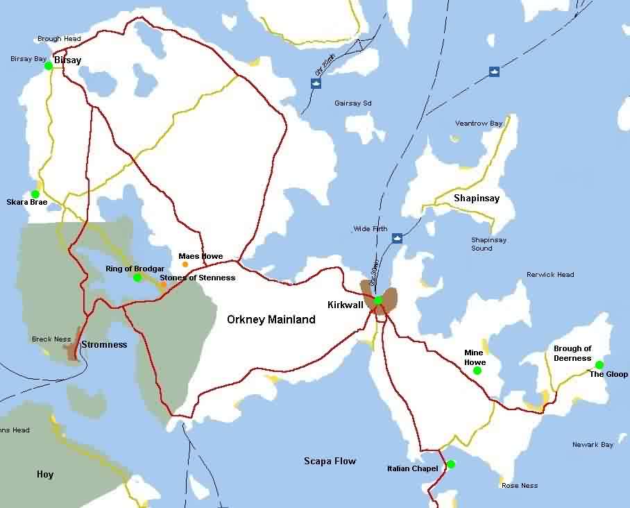 Sanday page View of Start Point lighthouse Views of Whitmill Bay On Cata Sand Views of the Bay of Newark ( & lots of seals) Views of Quoynes Views of Otters Wick Views of Scar House Views of Stove and the bay Views of Deerness Views of the Italian Chapel The dig at Mine Howe Views of the Ring of Brodgar Views of Birsay Views of Skara Brae Views of Kirkwall, the Palaces &  the harbour Orkney page